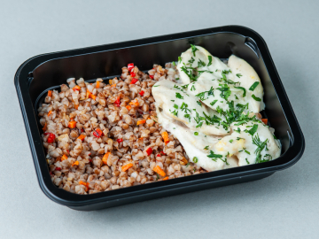 Hrișcă cu piept de pui în sos alb