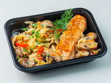 Varză înăbușită cu ciuperci și mic de pui